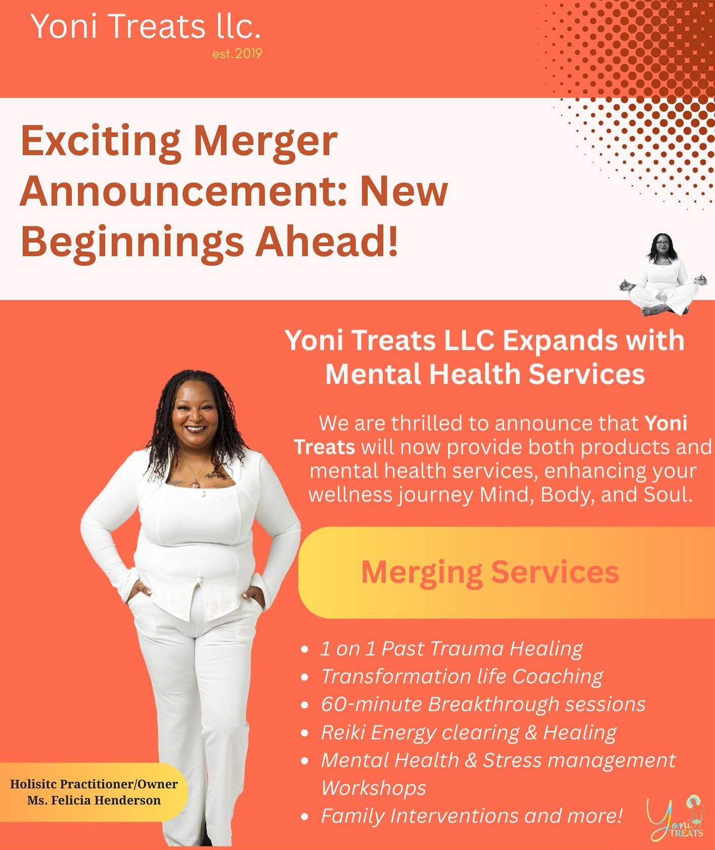Through Yoni Treats, we’re redefining self-care by blending mental health support with spiritual wellness—empowering individuals to heal deeply, love freely, and live abundantly.